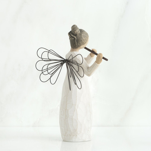 Standing angel in a cream dress with wire wings and playing the flute. A lovely gift for those who bring music and harmony to the world around them.