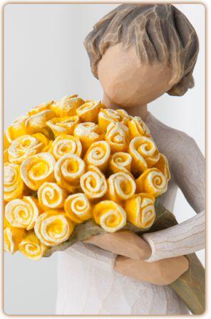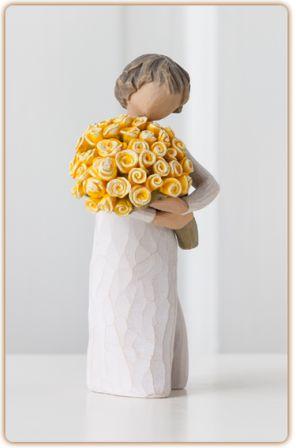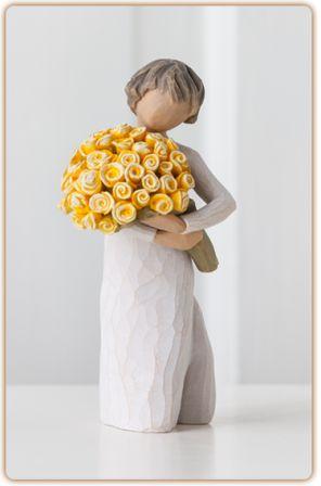 Willow Tree is an intimate line of figurative sculptures that speak in quiet ways to heal, comfort, protect and inspire.This piece is cast from Susan Lordi's original carving and then painted by hand. Expression is revealed through gestures only ... a tilt of the head, placement of the hands, a turn of the body. The simplicity of form and the absence of facial features signify Willow Tree.
