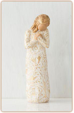 Willow Tree is an intimate line of figurative sculptures that speak in quiet ways to heal, comfort, protect and inspire.This piece is cast from Susan Lordi's original carving and then painted by hand. Expression is revealed through gestures only ... a tilt of the head, placement of the hands, a turn of the body. The simplicity of form and the absence of facial features signify Willow Tree.