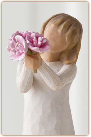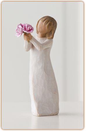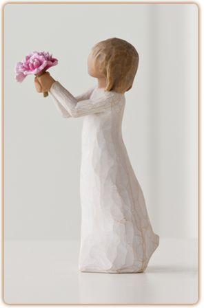 Willow Tree is an intimate line of figurative sculptures that speak in quiet ways to heal, comfort, protect and inspire.This piece is cast from Susan Lordi's original carving and then painted by hand. Expression is revealed through gestures only ... a tilt of the head, placement of the hands, a turn of the body. The simplicity of form and the absence of facial features signify Willow Tree.