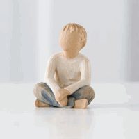Willow Tree is an intimate line of figurative sculptures that speak in quiet ways to heal, comfort, protect and inspire.This piece is cast from Susan Lordi's original carving and then painted by hand. Expression is revealed through gestures only ... a tilt of the head, placement of the hands, a turn of the body. The simplicity of form and the absence of facial features signify Willow Tree.